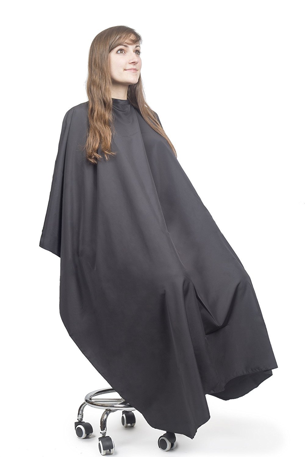 Clásica y funcional, diseñada para cubrir completamente al cliente durante cortes, afeitados o tintes. Fabricada en material ligero y resistente al agua, protege la ropa de cabellos y productos químicos. Su tamaño amplio y cierre ajustable garantizan comodidad y seguridad, ofreciendo la experiencia profesional.